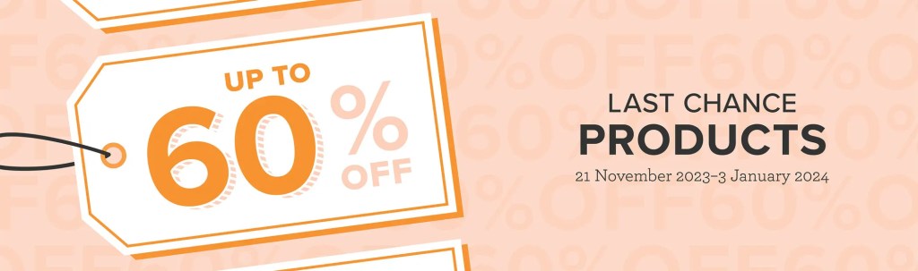 From 21 November 2023–3 January 2024, you can stock up on your favorite seasonal products and save up to 60% on essential craft supplies! So, what are you waiting for? Start shopping and selling! After all, a selection of Last Chance Products will only be available while supplies last.